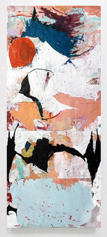 , 2019, collaged paper, acrylic and graphite on linen, 90 x 38 in (229 x 96 cm)