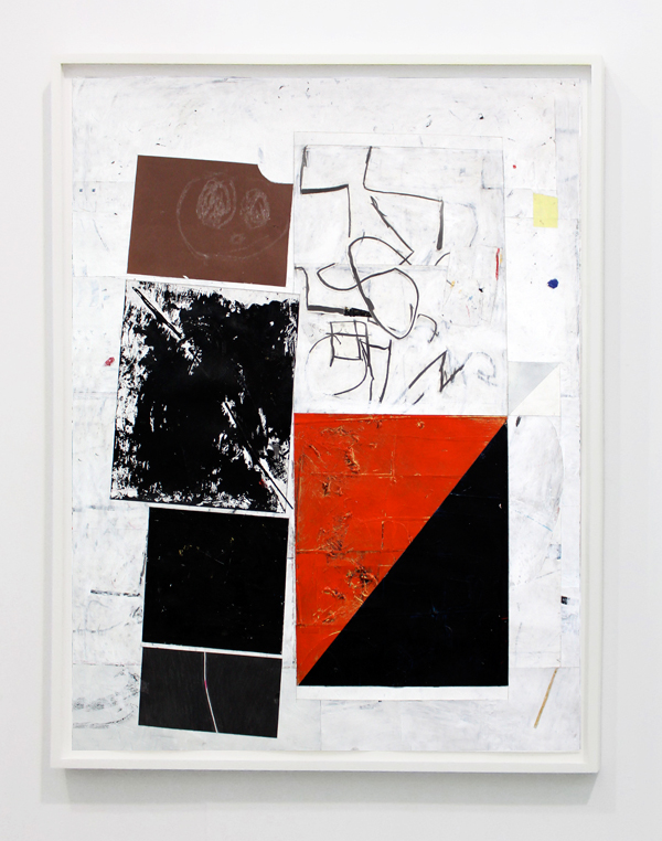 , 2013, collaged paper, acrylic, oil crayon, tshirt and graphite on paper, 50 x 38 in (127 x 96 cm)